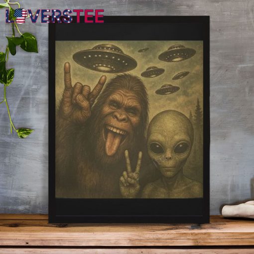 Bigfoot Rock Selfie with Aliens Funny Shirt