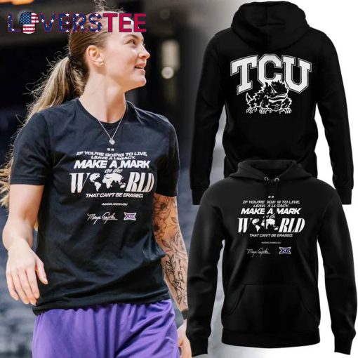 First impression? This TCU Horned Frogs “Make A Mark At The World” Hoodie is a statement piece. The bold “MAKE A MARK” text across the chest screams confidence, while the “THAT CAN’T BE ERASED” detail adds a rebellious touch. The TCU logo and minimalist typography give it a clean, modern look that’s perfect for both streetwear and campus fashion. The black and purple colorway stays true to the Horned Frogs’ spirit, making it an instant eye-catcher. Whether you’re repping your school pride or just love a sleek hoodie, this design doesn’t disappoint.